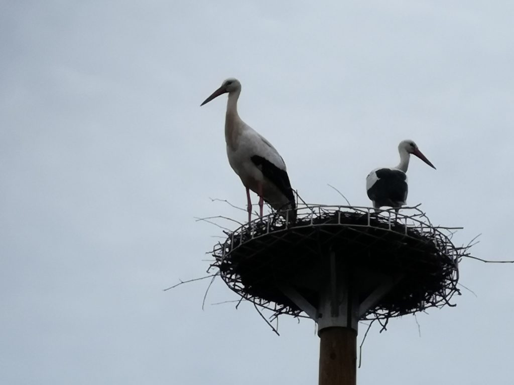 L’an dernier, à pareille époque, nous étions nombreux à guetter chaque jour les signes d’une installation d’un couple de cigognes sur le mât qui les attendait près de l’Aire de Jeux.