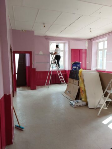La plupart des travaux de rafraichissement et d’adaptation sont réalisés « en régie », c’est-à-dire par nos agents, que nous remercions très chaleureusement pour leur engagement, dans un souci d’économie concernant une installation provisoire.