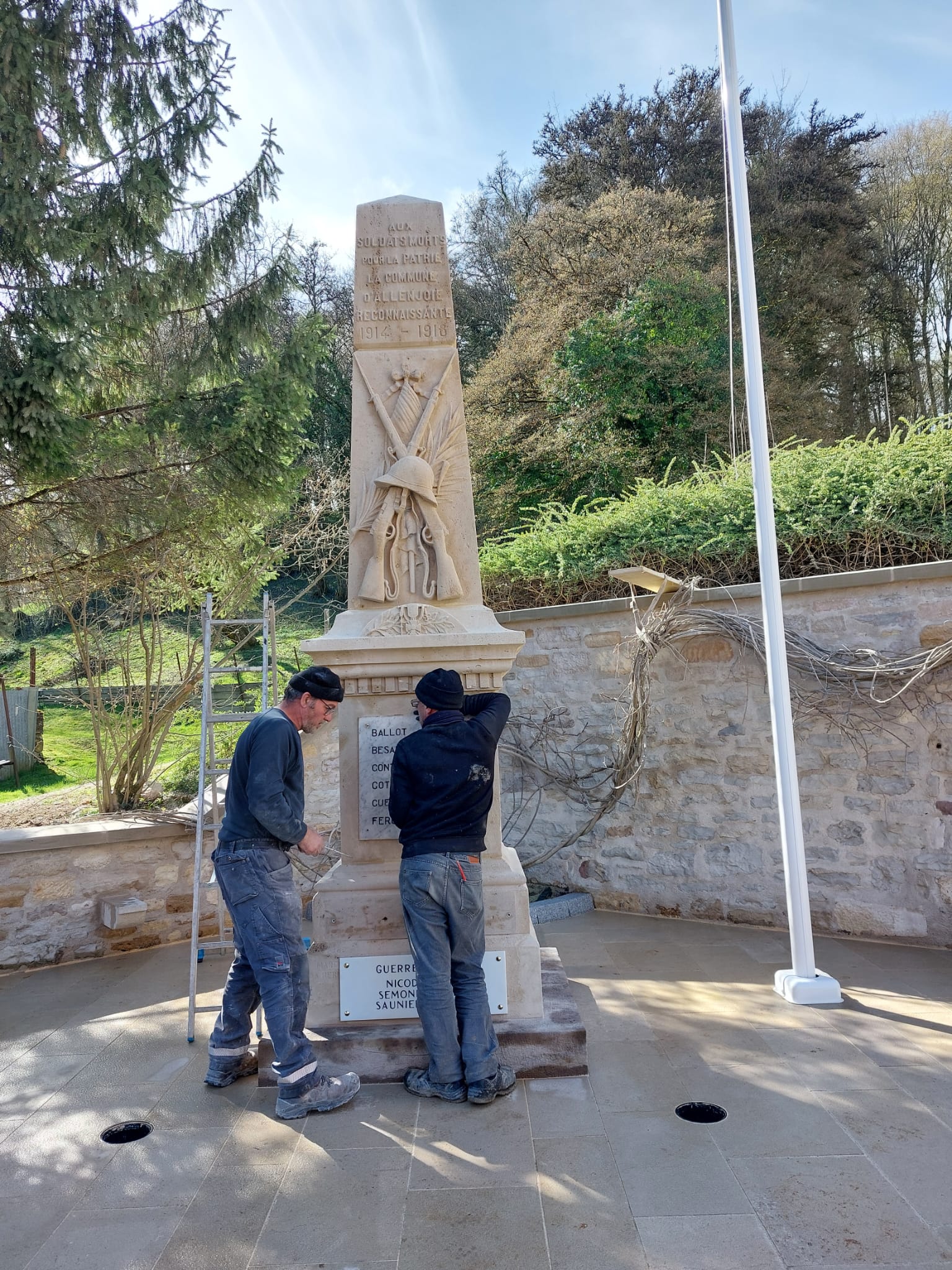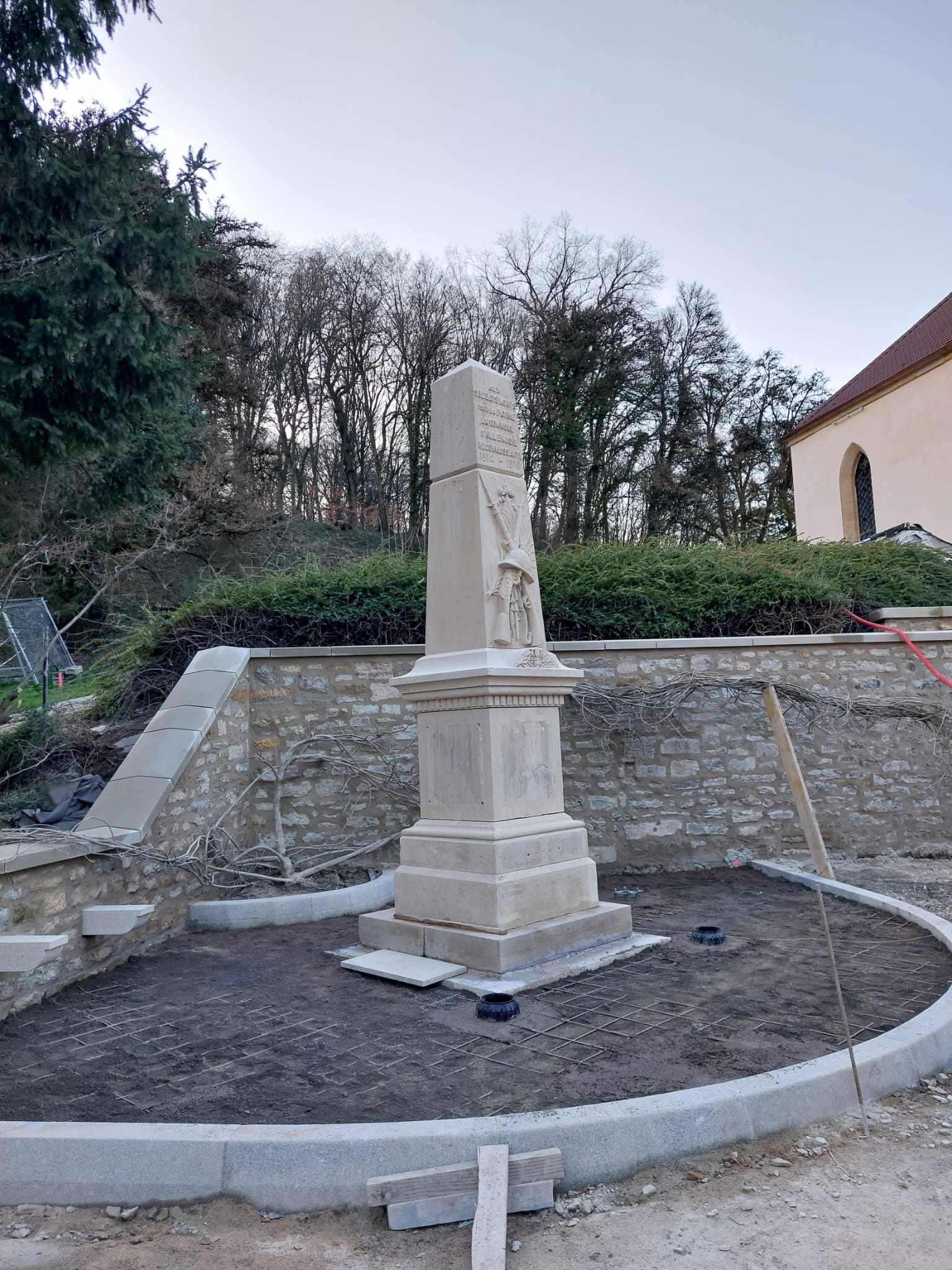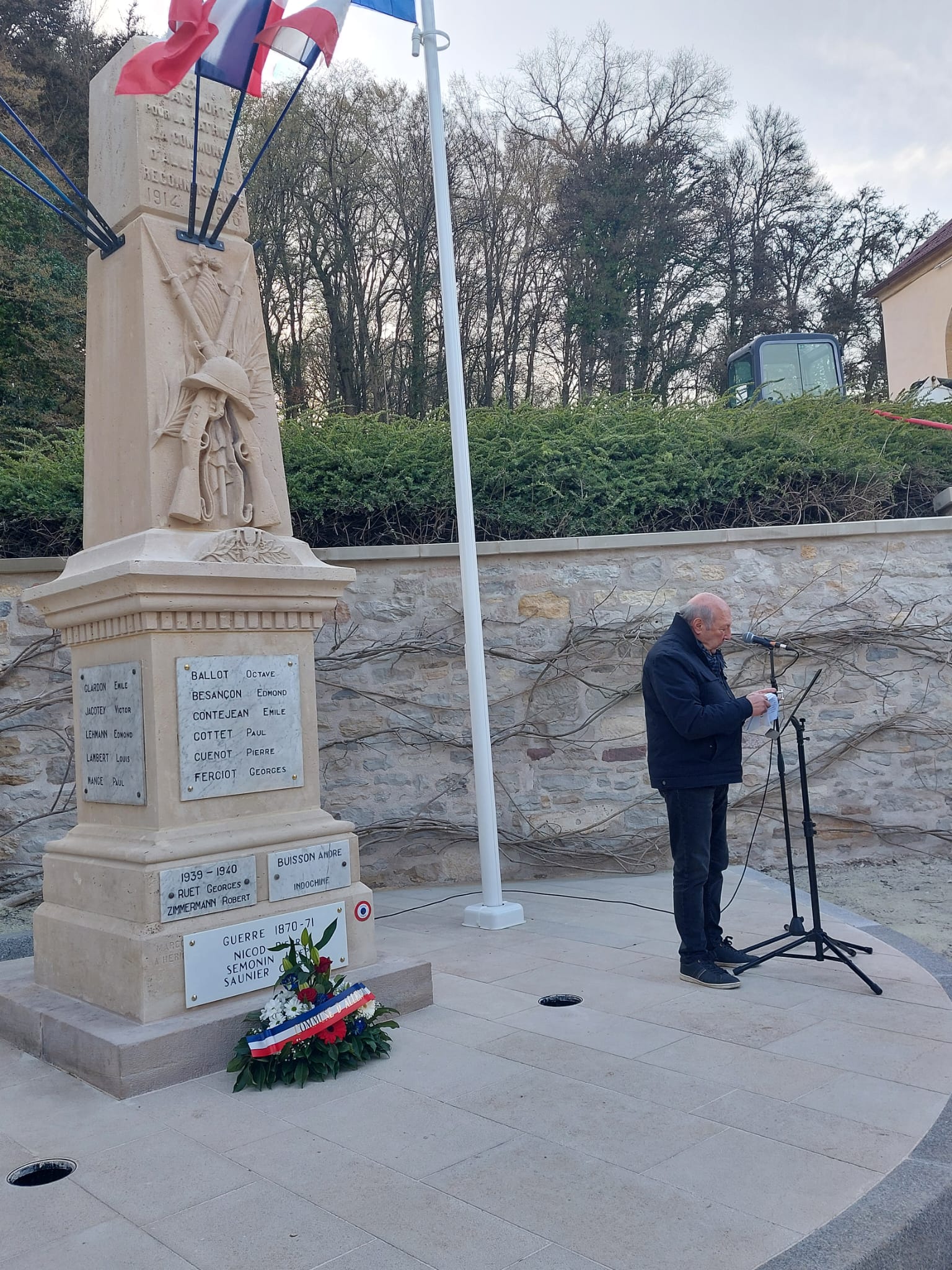 Confiés à l’entreprise « Arts de Pierre », les travaux étaient menés « tambour battant » ces dernières semaines afin de permettre la tenue de cette commémoration. De l’avis général, l’opération est parfaitement réussie, avec l’adjonction d’un mat pour « les couleurs » et le bel environnement constitué du socle et des murs en pierres. Ne manquent plus que les 2 projecteurs au sol pour achever cette transformation.